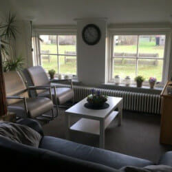 Appartementen in Terschellinger boerderij aan de rand van het Formerumer bos, 2,5 km vanaf Noordzeestrand, grenst aan veld met chaletcaravans van camping “De Brambei”. De Riel is het hoekappartement aan de oostkant, gelegen aan onverhard karrespoor.