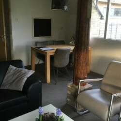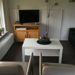 19 m2, vaste vloerbedekking, 2-zitsbank en twee fauteuils, ramen aan oost en zuidkant. Openslaande deur naar terras. Digitale televisie.